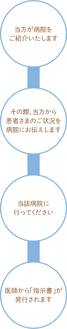 医師からの指示書次第になりますが早ければ即日、遅くとも3営業日ほどで開始となります。