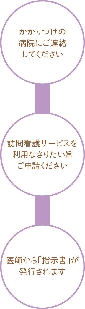 ケアマネージャーさんが作成した「ケアプラン」に基づき、訪問看護サービスを行います。